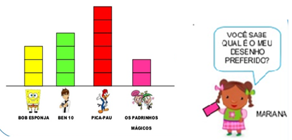 1-Observe no gráfico os desenhos preferidos da turma de Mariana. Cada criança colocou uma ficha no desenho de que mais gosta. Você consegue descobrir qual é o desenho preferido da turma? Circule o nome do desenho.